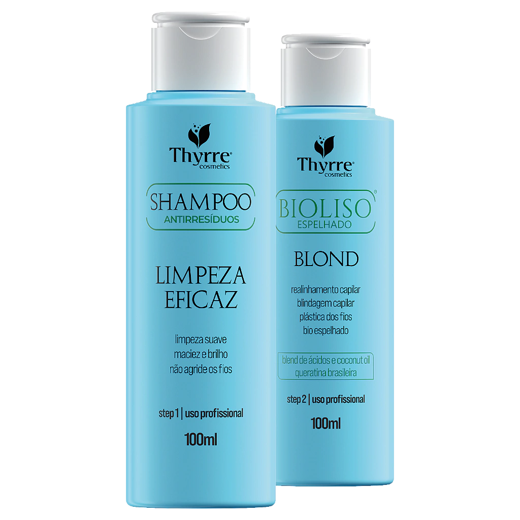 A Selagem Blond BioLiso Espelhado da Thyrre Cosmetics sem formol possui uma tecnologia eficaz que proporciona aos fios um efeito liso absoluto e imediato. É um tratamento completo para os cabelos, que deixa os fios alinhados e reconstruídos. Contém Óleo de Côco e Blend de Ácidos que proporcionam um liso natural com brilho e redução de volume, além de promover fios platinados, matizados e iluminados.