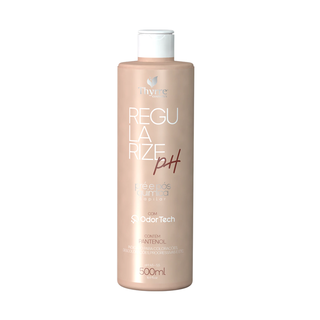 O Regularize Ph - Pré e Pós-química - Thyrre Cosmetics age equilibrando o pH, reconectando as ligações estruturais do cabelo. Reduz em até 70% acúmulo de danos e saturação das fibras capilares, resultado do uso constante de produtos químicos.